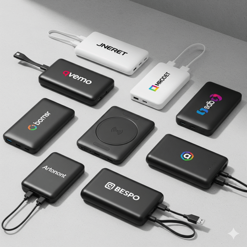 Electronics – Branded power banks, USB flash drives, and chargers.