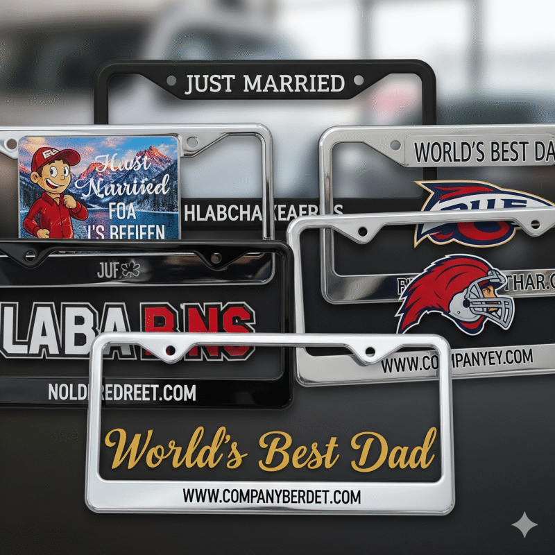 Custom License Plate Frames – A practical branding solution for vehicles.